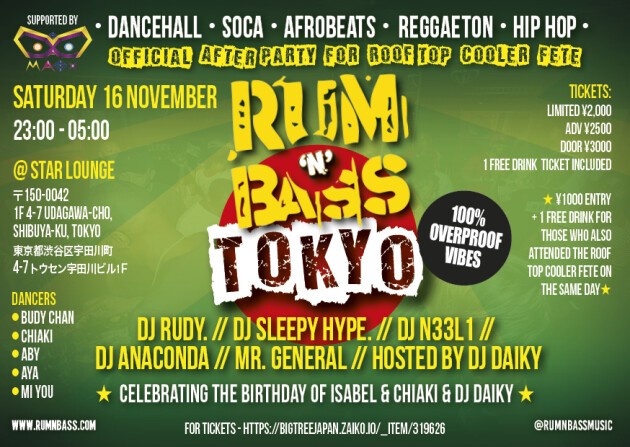100% Over Proof Vibes, "Rum N Bass" will be back at Star Lounge Shibuya on the 16th of November.
