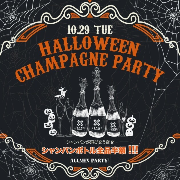 普段毎週火曜日は定休日のJINXS SAPPOROでございますが、この日はハロウィン期間ということで営業決定! なんと、当店のシャンパンが全品、当日限定で半額に?! 沢山のシャンパンと最高の音楽でハロウィン期間を過ごそう!!