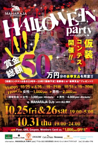 ハロウィンはクラブスタイルで翌朝5時まで営業!早い時間帯はディスコミュージック、深夜帯はクラブミュージック中心にお届けします。22:30~23:00に仮装コンテスト開催!