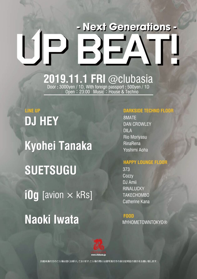 Resident DJs are Kyohei Tanaka & SUETSUGU will make floor higher with new generation.