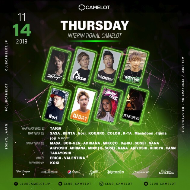 ※CLUB camelot will conduct ID check on all visitors. A photo ID with age verification is required at entrance.