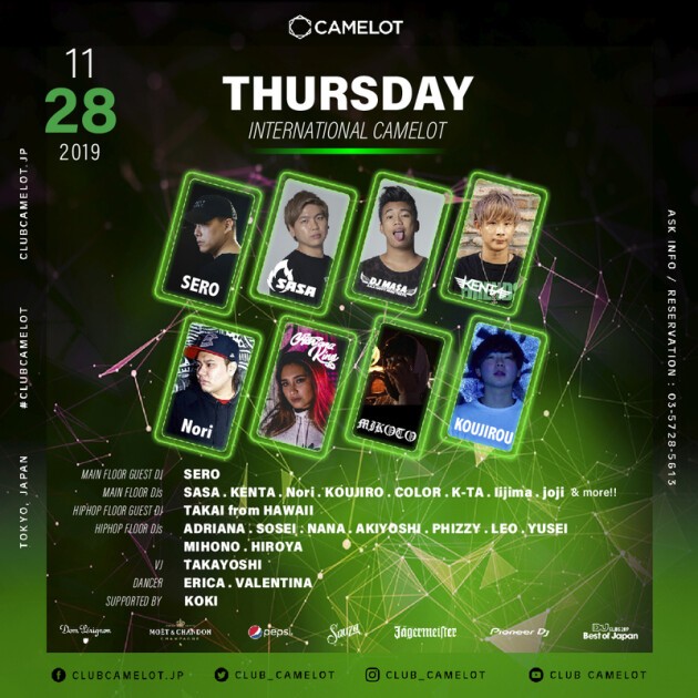 ※CLUB camelot will conduct ID check on all visitors. A photo ID with age verification is required at entrance.