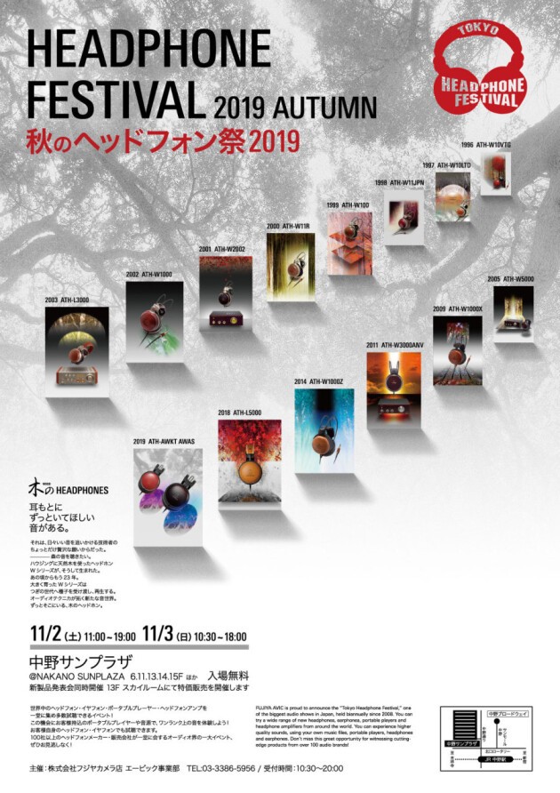 100社以上のヘッドフォンメーカー・販売会社が参加し、世界中のヘッドフォン・イヤフォン・ポータブルプレーヤー・ヘッドフォンアンプが一挙に中野に集結! トークショーや過去の名機の展示も