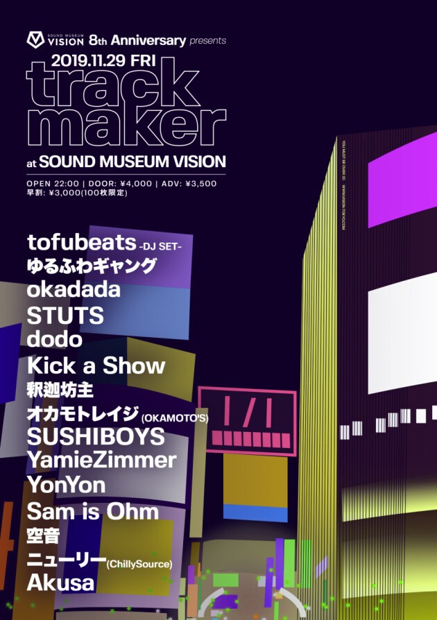 ゆるふわギャング、tofubeatsなど豪華アーティストが登場、VISIONのアニバーサリー第一日目にtrackmakerを開催!