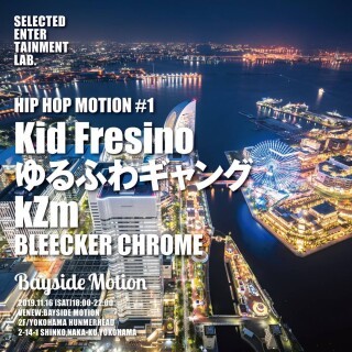 2019年11月16日(土曜日)に、新港ふ頭客船ターミナル横浜ハンマーヘッドの2 階にオープンした新店舗「Bayside Motion」で開催されるHIP HOP MOTION#1に、Kid Fresino、ゆるふわギャング、kZmといった新世代を代表するラッパーたちが揃って出演する。(https://www.baysidemotion.jp)