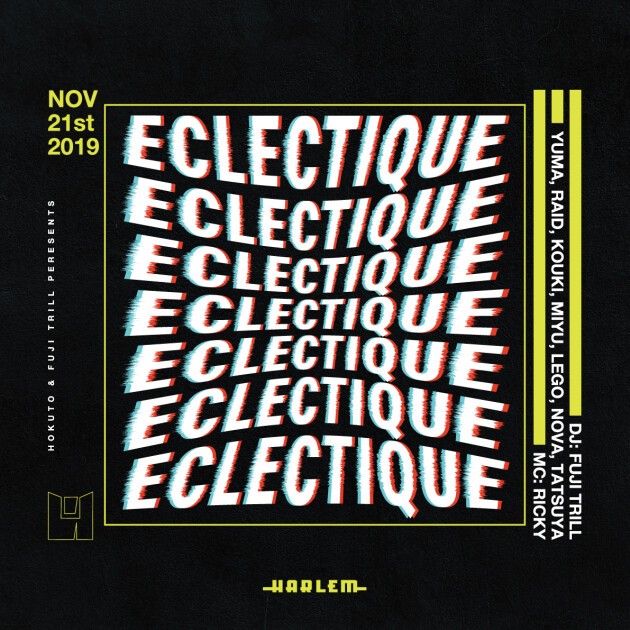 DJ HOKUTOが5年に渡り毎年2回のヨーロッパツアーを敢行する中で、アムステルダムで出会った今までのDJの常識を覆すDJスタイル“Eclectic”。そして、音楽のメッカヨーロッパで毎夜繰り広げられる、自由な音楽感と遊びのスタイルに衝撃を受け、そのパーティ感とDJスタイル再現するパーティとしてスタートしたのが『ECLECTIQUE』。