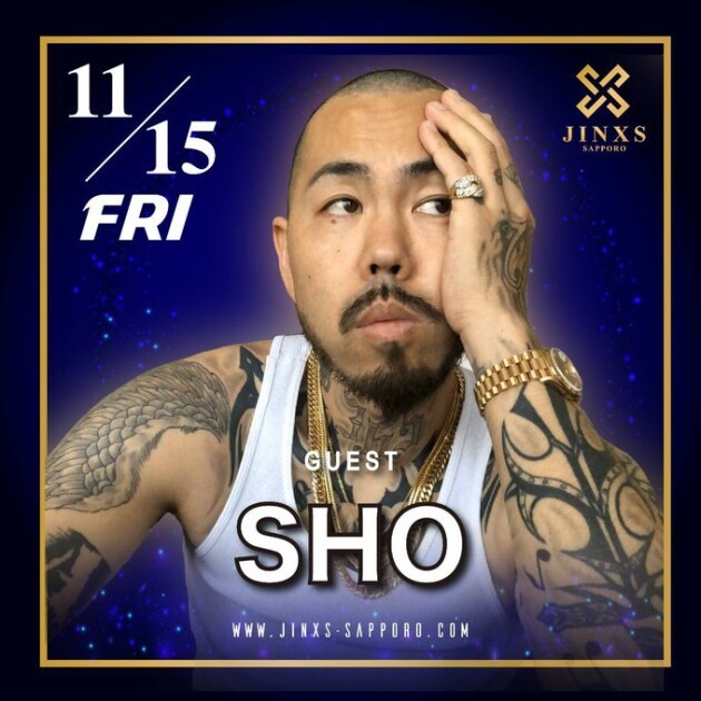 『薬物はやめろ』『BABABABALENCIAGA』などで知られるラッパーの『SHO』が SP GUESTでJINXS SAPPOROに登場!! GUEST DJには東京を中心に全国で活動する『DJ CHIN-NEN』も出演!