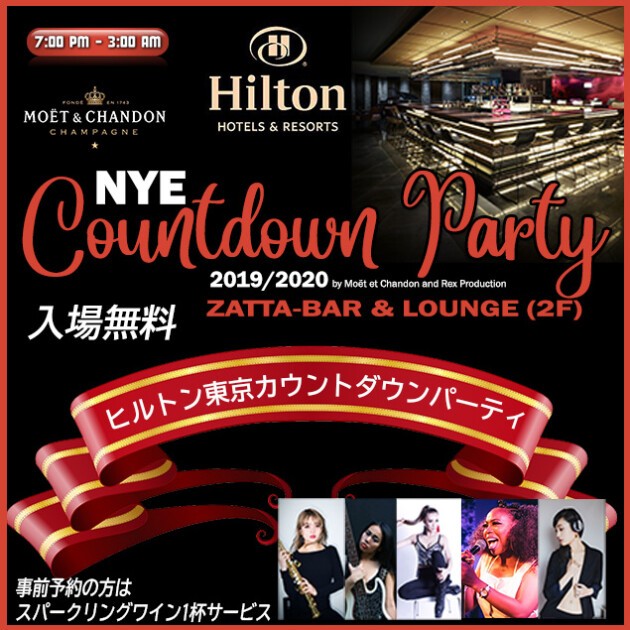 ヒルトン東京の”ZATTA”にて、新宿エリア随一のカウントダウンパーティ「NYE COUNTDOWN 2019/20」が開催! 入場無料・Free Entrance(事前予約な無料スパークリングワインプレゼントFree sparkling wine if pre-register