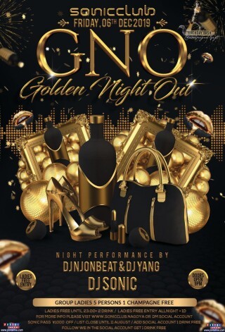 この日は女性無料のGolden Night Out、略してGNO!初来店(SONICPASS無し)でも女性無料!世界標準のクラブ「sonicclub」で盛り上がろう!