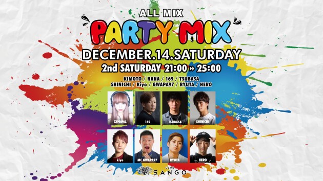 早い時間から盛り上がる!週末21時から!第2土曜はALL MIXで楽しめる「PARTY MIX」