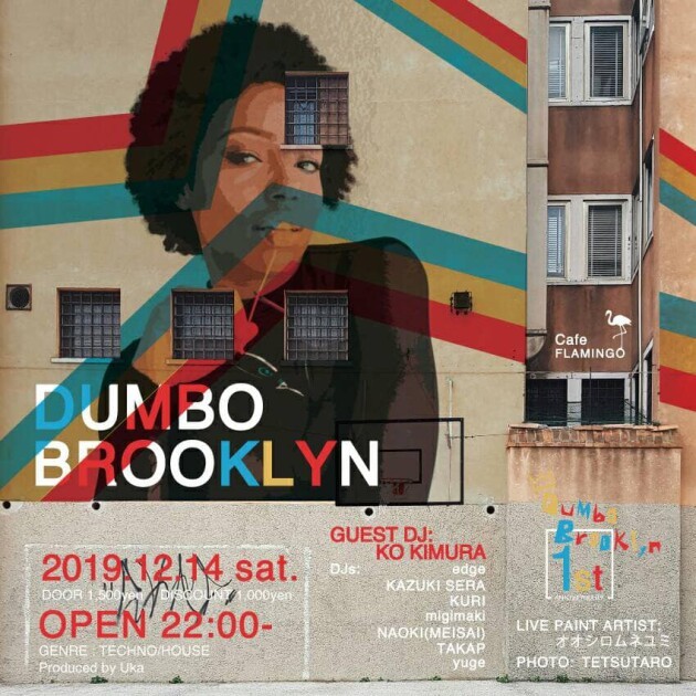 一面の壁画アートに囲まれたNY/Brooklynの倉庫街Dumbo。マンハッタンの夜景を望みながらシャンパングラスを傾けて、和やかでもヒップで刺激的なフラットパーティ。心地よい音楽と気の置けない仲間たちと過ごす”Dumbo Brooklyn” 1st anniversary!!