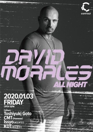 ダンスフロアミュージックの象徴としてトップに君臨し続けるDavid MoralesがContactへ帰還! クラブカルチャー黎明期からハウスの魅力を世界に広め続けているニューヨークの雄が新春の夜を華麗に彩る。メインストリームのトップミュージシャンのリミックスを手掛けながらも、ルーツであるアンダーグラウンドなシーンと積極的にかかわりながら、数々の伝説を生み出してきたDavid Morales。Paradise GarageやClub ZanzibarでのDJを経て、ニューヨークのダンスミュージックに欠かせない存在へと成長を果たし、〈Def Mix Productions〉を設立後はFrankie Knucklesをはじめとする錚々たるアーティストの音楽を世に送り出してきた。
