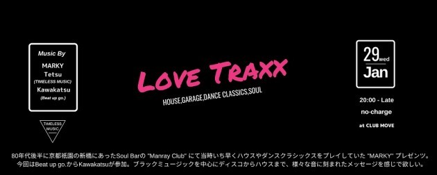 80年代後半に京都祇園の新橋にあったSoul Barの "Manray Club" にて当時いち早くハウスやダンスクラシックスをプレイしていた "MARKY" プレゼンツ。