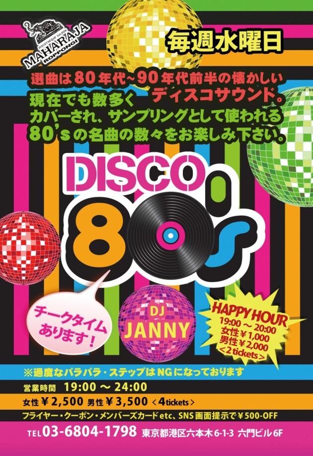 毎週水曜日は80年代のディスコミュージック中心でオンエアー♪バブル世代の方に大人気のイベントです!