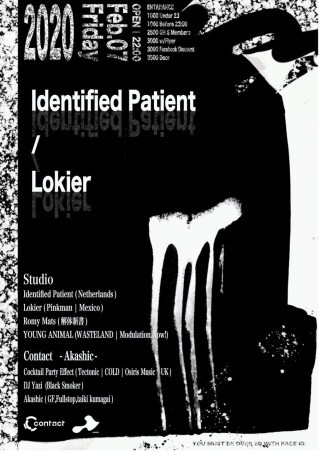 ソロ作品をはじめ、Sophie du Palaisをボーカルに迎えたコラボレーション作品を、おもに〈Pinkman〉から発表しているIdentified Patientは、昨年〈Dekmantel〉のUFOシリーズからリリースしたEPで話題沸騰中。作品同様の知識の深みと情熱がうかがえるDJでは、新旧のタイトルを融合して、ネオンライトの輝くディストピアな世界へと絶妙にトリップさせる退廃的なディスコ/マシンファンクを創造する。Identified Patientにくわえ、〈Pinkman〉の誇るもうひとりの看板アーティストLokierも出演。〈Boysnoize〉や〈Squirrels On Film〉からもリリースを重ね、アシッド/テクノ/EBMに独自の鋭さを交えたサウンドを提案する気鋭のメキシコ人アーティストだ。