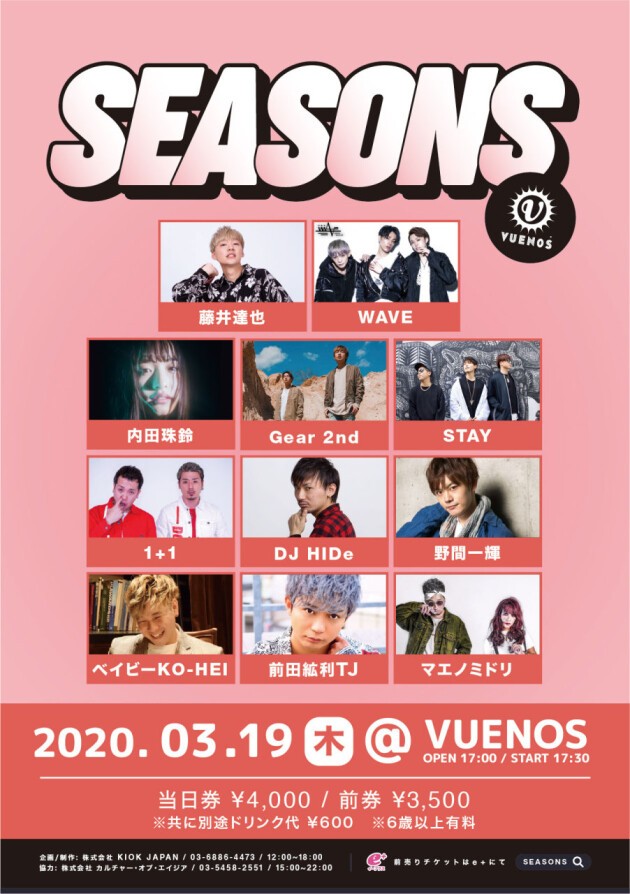 また、本日の日本政府からの要請を受けまして、2020年3月19日 (木) SEASONSの開催を自粛し、