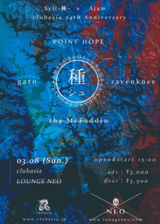 3/8のclubasia、LOUNGE NEO連動イベントSyU-種-×Ajamですが、