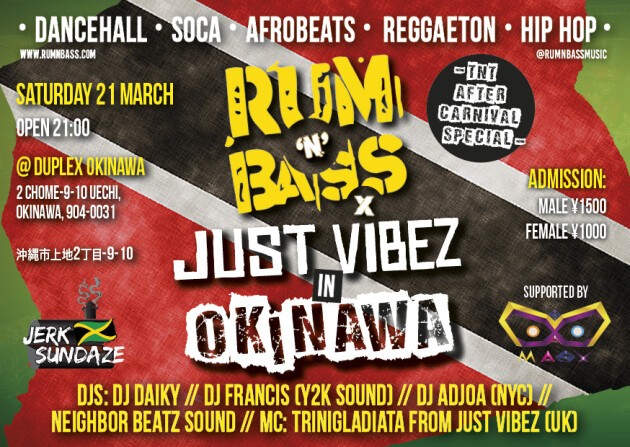 米軍基地があり異国の雰囲気が魅力的な沖縄にRUM 'N' BASSが再び上陸しソカの本場トリニダードのソカカーニバルVIBESをお届け!!!.