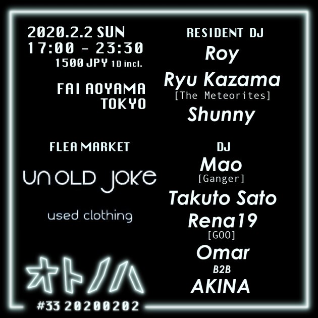 オトノハは2017年より始動し2020年第2回目の今回は原宿の人気used shop “Un old jork”をflea marketとして招待。音楽を通したOFF THE GRIDな交流の場を提供し続けている音楽会に新しい風をふかしてくれる。開催の地は東京・青山の地下にカウンターを据えるBAR、Fai Aoyama。fashionと音楽から生まれる雰囲気を楽しんでいただきたい。