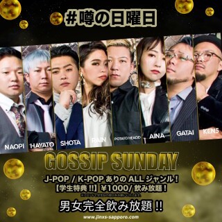 毎週日曜日はJ-POP,K-POPあり!何でもありの #噂の日曜日 ALL MIX PARTY『GOSSIP SUNDAY』を開催! GUEST DJには全国のクラブで定評を集めるフィメールDJ『RAIN』がレギューラーゲストとして出演中!
