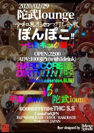 函館を代表するHardcore techno集団「HARDCORE DIRTY」とRave musicをculturalに訴求し続ける「不楽」とRoots&Cultureを掲げる「陀武lounge」三つ巴の異形四つ打ち合戦ぽんぽこ!!!!!邂逅にして最終決戦!
