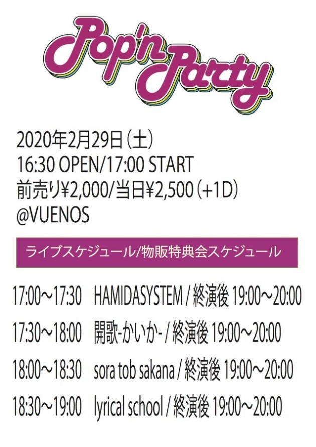2/29(土)に予定しておりました、「Pop'n Party」に関してまして新型コロナウイルスの感染拡大を受けて、