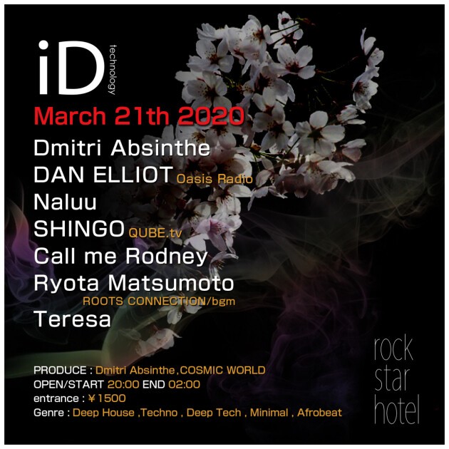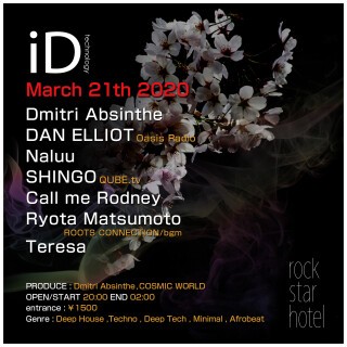 2020年1月18日1周年にて、AOKI takamasa を迎えオーディエンスを興奮の坩堝に誘ったrock star hotel テクノパーティー" iD "が、3月21開催される。