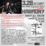 3月のHARMONYはあの伝説のNYのクラブ "PARADISE GARAGE" での ”LARRY LEVAN” や "LOFT" の "DAVID MANCUSO" の体験を元に今のダンスミュージックの本質を見据えた "TOCCHI" がGUESTで登場。