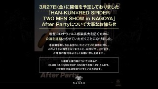 「HANKUN / REDSPIDER TWO MEN SHOW in NAGOYA」Aftre Partyについて大事なお知らせ