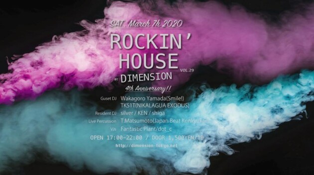 渋谷道玄坂のDimension Tokyoにて、ホスピタリティ溢れるハウスパーティ「Smile !」を主催。ゲストにローンチのWatusiからはじまり、DJ Saimura、Yukihiro Fukutomi、NAZWA!、Omodaka、Shinichiro Yokota、Dazzle Drums、Soichi Terada & Shinichiro Yokotaと、毎回豪華アーティストやDJを迎えて年4回程のペースで開催している。