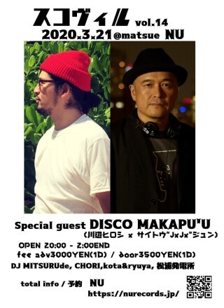 SPECIAL GUEST: DISCO MAKAPU‘U (川辺ヒロシ/TOKYO No.1 SOUL SET x サイトウ″JxJx″ ジュン/YOUR SONG IS GOOD)