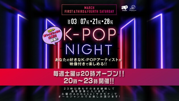 早い時間から楽しめて、さらに23時以降もそのままAmmona「サタモナ」でオールジャンルをお楽しみいただけます!