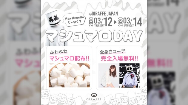 3月12日からの3日間GIRAFFE JAPANEではマシュマロDAYを開催!