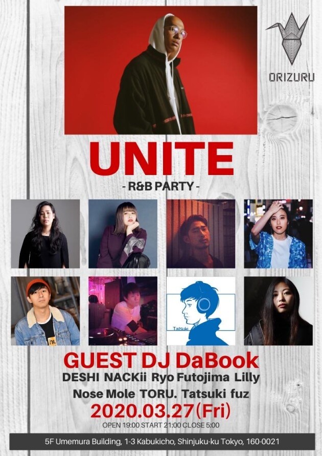 東京イチの音質を誇るORIZURUでのR&B PARTYです。 かねてよりR&Bに造詣が深いDaBookさんをゲストDJに迎え 選りすぐりのDJ陣で皆様にお届けいたします。
