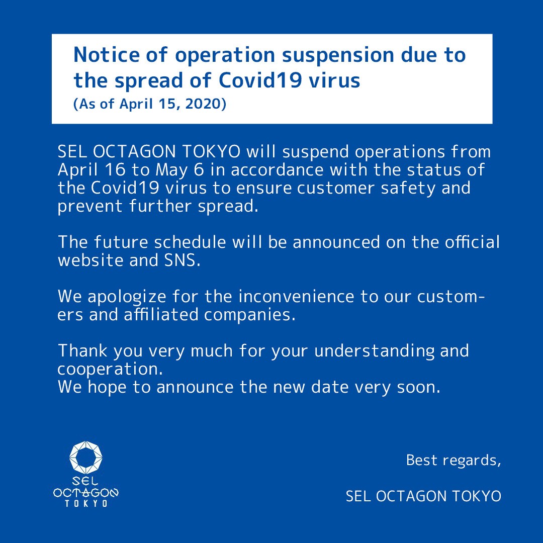 SEL OCTAGON TOKYO will suspend operations from April 16 to May 6 in accordance