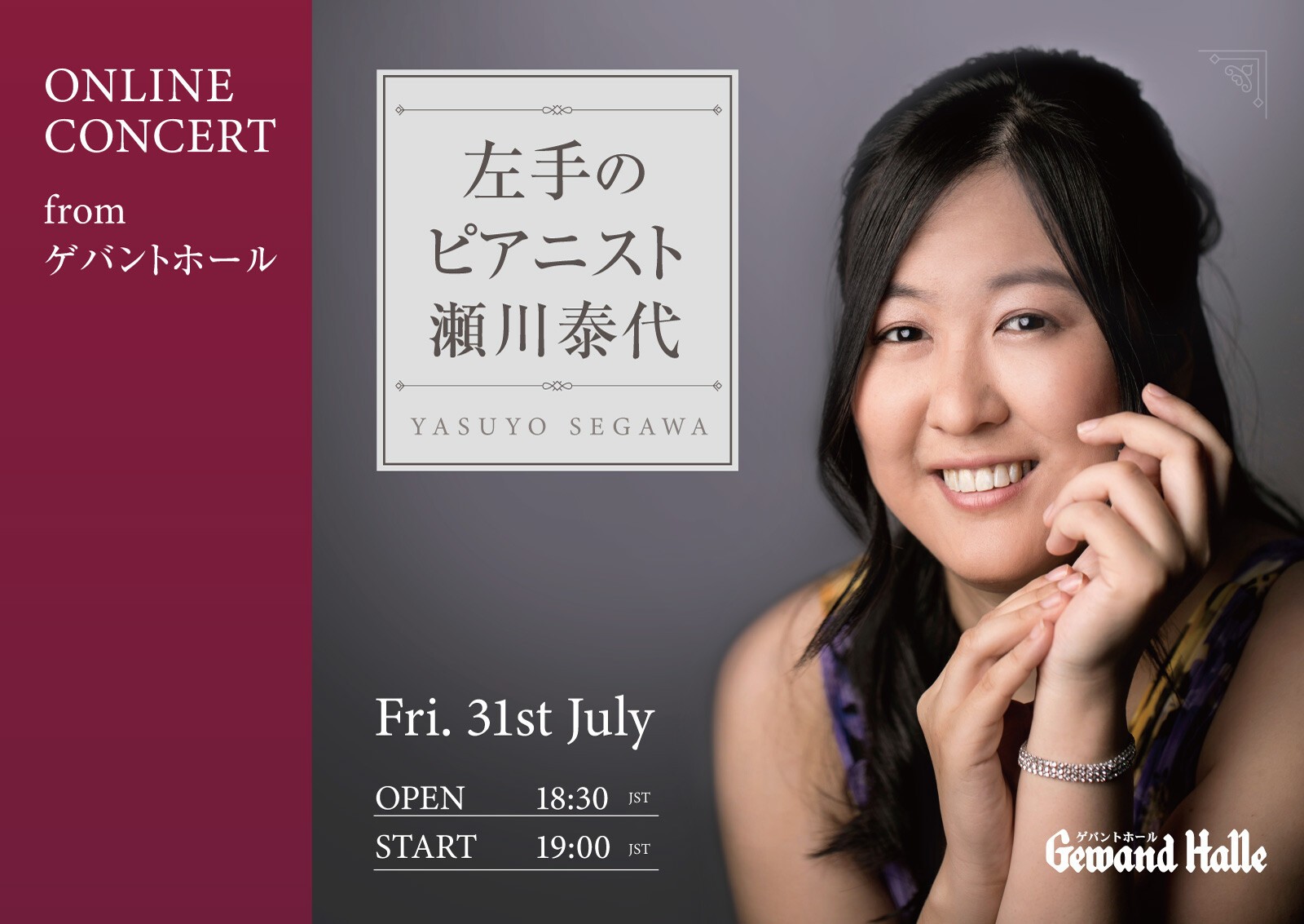 ・ライヴ配信および録画配信の映像の著作権は、ゲバントホール(株式会社WAKO)に帰属します。配信される映像、画面、音声を許可なく他のウェブサイトや著作物等に転載することは著作権法で禁じられています。