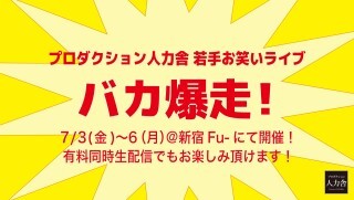 プロダクション人力舎の若手芸人による定期ライブ「バカ爆走!」がいよいよ劇場にて開催決定!
