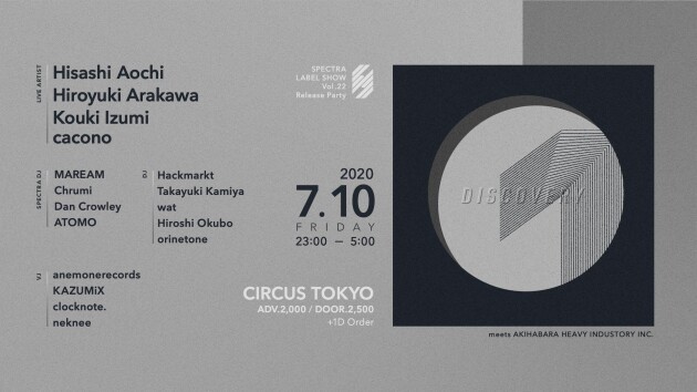 The 23rd SPECTRA LABEL SHOW will be our first event in four months. It will be the first time the label hosts main guest HISASHI AOCHI as the winner of the our competition. SPECTRA and Akihabara Heavy Industries artists will support the event.