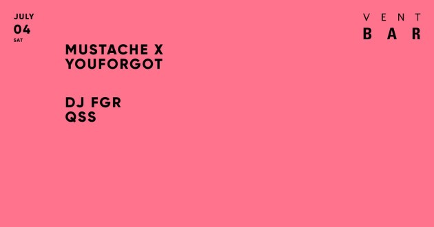 VENTは営業再開に向け、週末に不定期のBAR営業をスタートします。さまざまなガイドラインに沿った制約の中での営業となりますが、何卒ご了承ください。7月4日に開催される待望のVENT BAR再開には、Mustache X、YOUFORGOT、DJ FGR、QSSが登場!