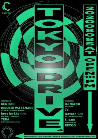日本が世界に誇るミュージッククリエイター/DJが集結するTOKYO DRIVEが4度目の開催を迎える。Studioには、2019年末に13年ぶりとなるフルアルバム「Möbius Strip」をリリースしたKEN ISHII、そしてKAITO名義でも絶え間なく作品を生み出し続けるHIROSHI WATANABEという日本を代表するクリエイターが登場。アムステルダムの〈Atomnation〉から良作を発表してきた、HIROSHI WATANABEとも共鳴するboys be kkoが持ち味全開のライヴで、そしてデトロイトテクノへの熱き魂を灯すTERAがサポートを務める。Contactフロアはアンダーグラウンドで根強い支持を持つ面々がラインナップ。レーベル〈10 Inches of Pleasure〉主宰、〈LIES Records〉などからのダンスフリーク唸らせるリリースで支持されるDJ Nozaki、独自のフリースタイルなDJingで屋内/野外問わずにラブコールを送られ続ける7eが登場。eryとMakiko Yamamotoにより結成されたユニットOoveenがContact初ライヴにてコズミックポップな空間へと誘い、N.O.S.やREMEDYの核となり幅の広い現場でプレイを重ねるk_yamと本年より自主レーベル〈SLIDE MOTION〉を設立させたRECOOが脇を固める。アシッドを軸にしつつもカッティングエッジな音が楽しめる空間を作り上げる。808の日に入り混じるリズムマシンの音に、ダンスミュージックの素晴らしさと多様性を感じられる一晩となるだろう。