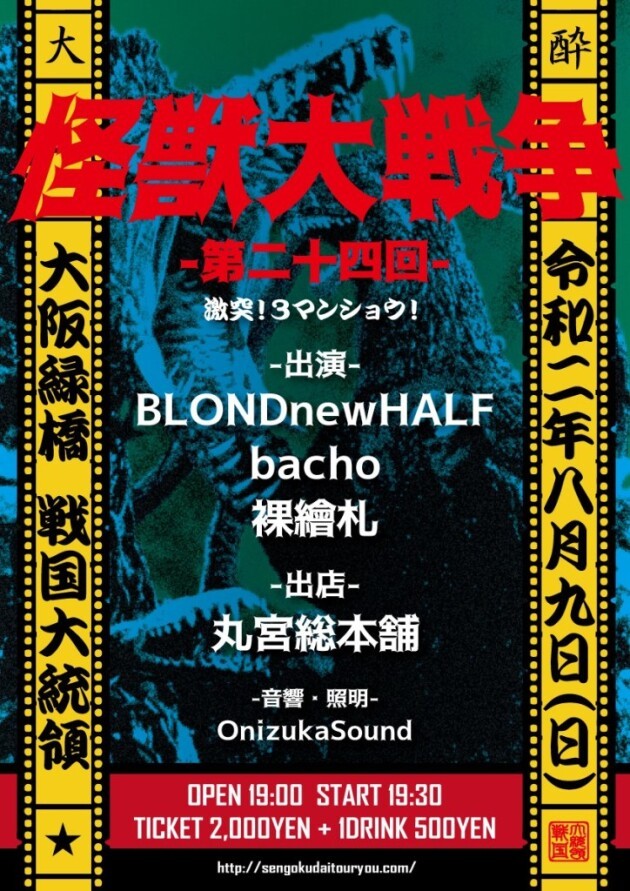 BLONDnewHALF bacho 裸繪札 FOOD 丸宮総本舗 OPEN 19:00 START 19:30 TICKET 2000YEN + 1Drink(500YEN)
