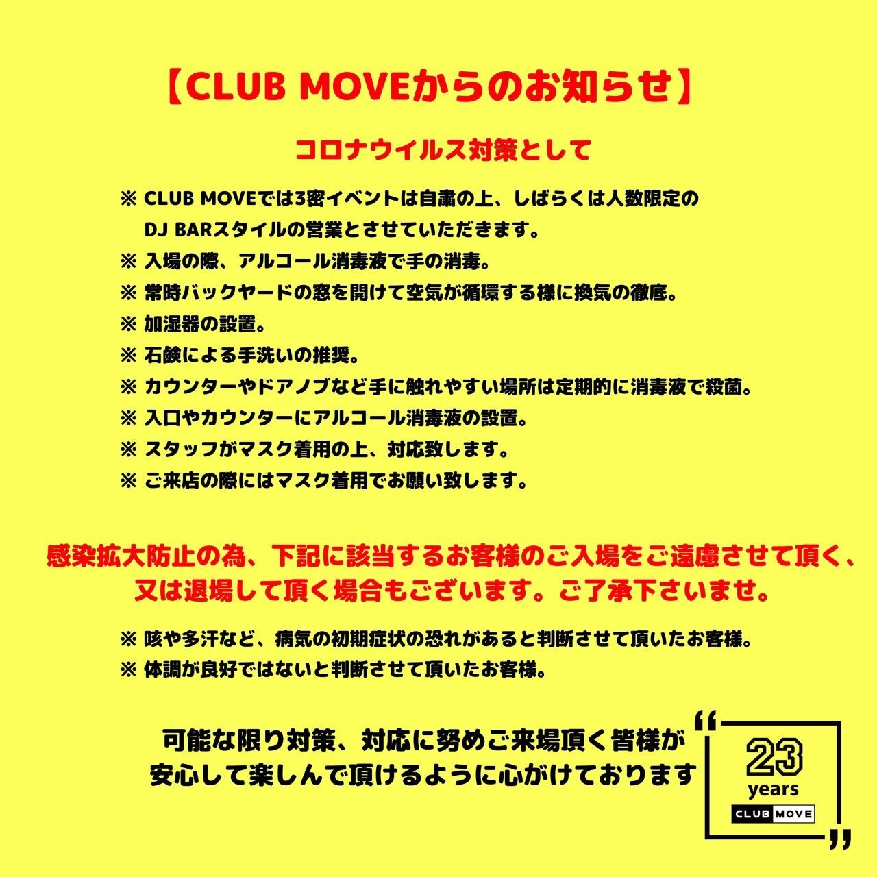 ※CLUB MOVEでは3密イベントは自粛の上、しばらくはDJ BARスタイルの営業とさせていただきます。