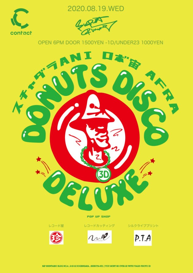 Donuts Disco Deluxe is formed by 3 individuals; DJ, MC, and beatboxer (スチャダラパーANI/ロボ宙/AFRA). Bringing Bronx’s 70’s outdoor block party to Japan with a new twist. Their own distinct style influenced by Japanese festivals like Fuji Rock that suits the local crowds focusing on Hip Hop, Soul, Funk, Disco incorporated with MC and human beatboxing. The three always delivers fun and exciting parties with special guests every time, along with regular food vendors/chai tea/record shop/original vinyl cutting/silk screen printing/and various merchandises. Come join the festivity until the last train.