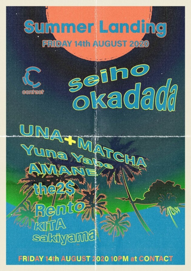 With summer at its peak, Contact announces the surprise event SUMMER LANDING. The track-maker Seiho, drawing much attention from around the world, has been channeling various styles of dance music into his productions like Hip Hop, Post-Dubstep, Electronica, and Chill Wave. The exceptional Okadada locks in the people on the dance floor with the pleasures of dance music using his transcendental skills and huge imagination. The two will go face to face in Studio X. The two, of the same generation, will each play 150 minutes aiming for new heights to create something unique with the audience. Be ready for the LANDING in the unknown. Contact floor features UNA+MATCHA, Yuna Yabe, and a lineup that brings new contrast into the scene crossing music, fashion, and culture to design a vivid yet avant-garde atmosphere. Let yourself go and enjoy this summer’s biggest party.