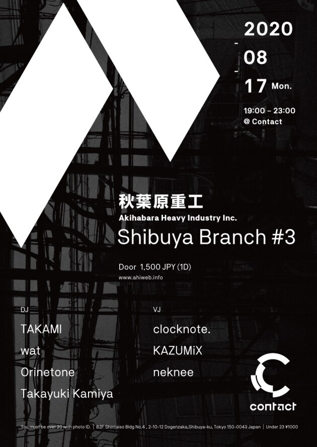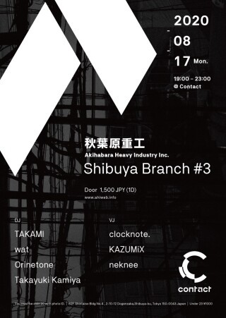 過去のContact開催では去年11月ぶりの開催となる今回は、日本のテクノシーンを牽引する「REBOOT」のメンバーであるTAKAMIを迎え、wat、orinetone、Takayuki Kamiyaによる実質の渋谷開催レジデントによるエクスクルーシブなパーティとなる。