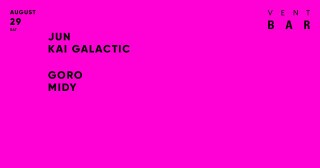 8月29日のVENT BARには、JUN、Kai Galactic、MIDY、GOROが登場!