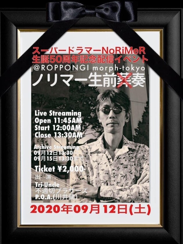 スーパードラマーNoRiMeR生誕50周年記念配信イベント 『ノリマー生前葬奏』 @ROPPONGI morph-tokyo配信 決定!!