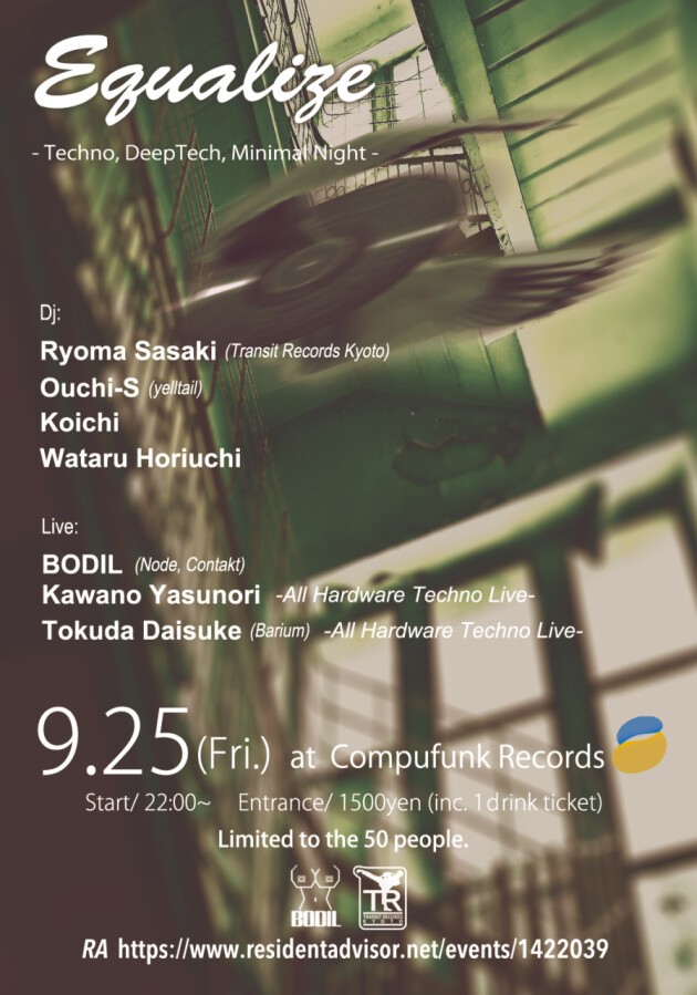 Currently he is playing in an underground techno/house party『Connected Underground』,『Deep Underground』,『yelltail』, all held in "Kyoto Metro" that is legendary night club in this historical city.