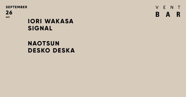 【 9月26日のVENT BARにIori Wakasa、SIGNAL、Naotsun、Desko Deskaが登場! 】