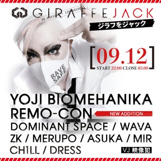 YOJI BIOMEHANIKAとその一味が現在休業中のクラブ『GIRAFFE JAPAN』を [ 09.12 ]にジャックする!!